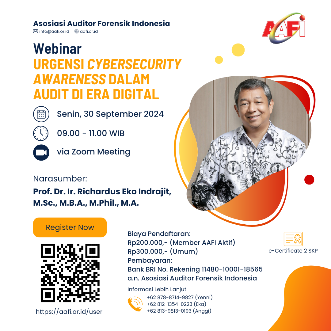 Asosiasi Auditor Forensik Indonesia Manggame (AAFI MANGGAME) mengundang Bapak/Ibu dalam Webinar Online dengan Tema: Urgensi Cybersecurity Awareness dalam Audit di Era Digital